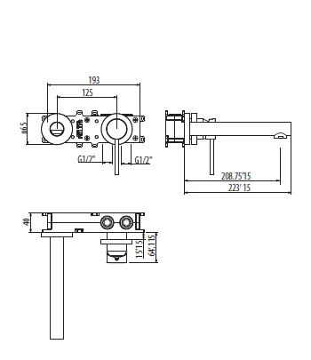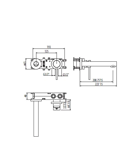 Batteria lavabo a muro con scatola ispezionabile bocca Ø 28 mm