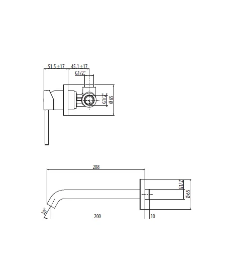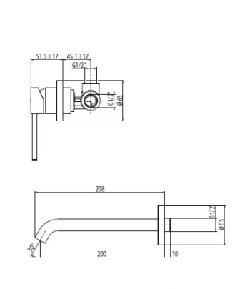 Miscelatore lavabo a muro con bocca erogazione 208 mm