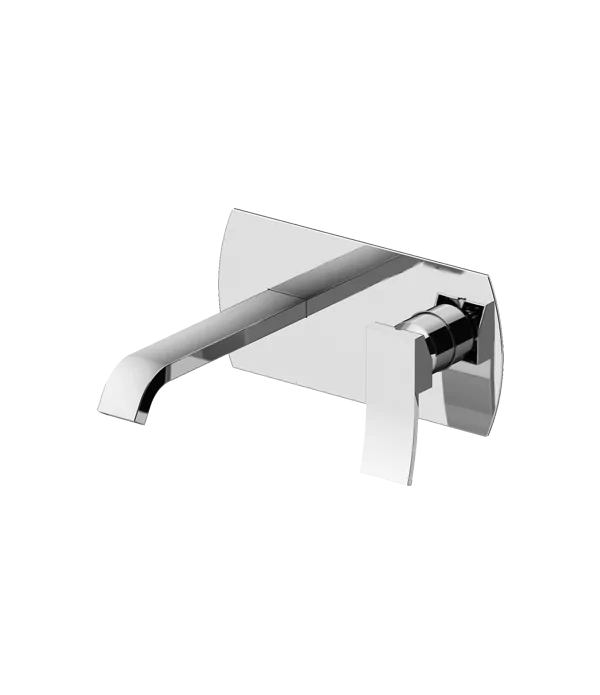 Miscelatore monocomando per lavabo incasso muro, con piastra orizzontale, senza scarico e flessibili mm 200.
