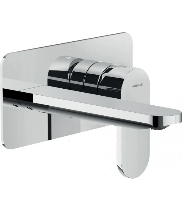 Miscelatore monocomando per lavandini incasso muro, con piastra orizzontale, senza scarico e flessibili.