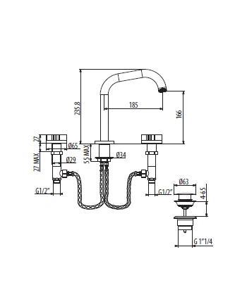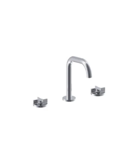 Rubinetto 3 fori per lavabo bagno con canna orientabile con