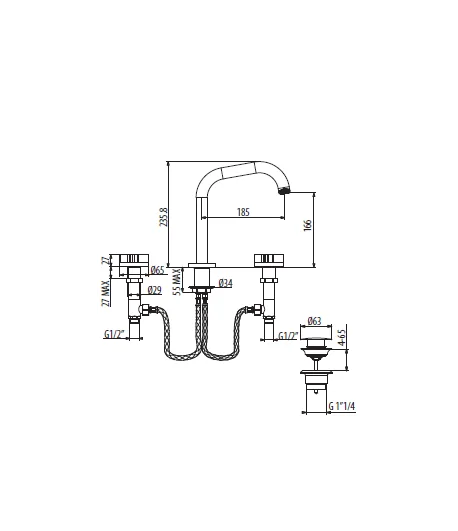 PARTE ESTERNA BATTERIA 3 FORI A PARETE CON BOCCA LUNGA PER LAVABO