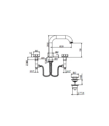 PARTE ESTERNA BATTERIA 3 FORI A PARETE PER LAVABO