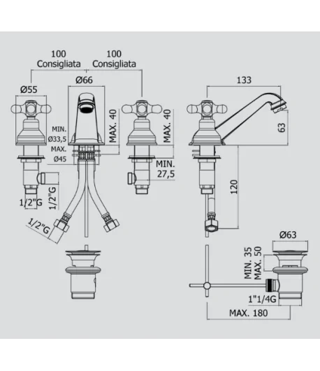BATTERIA 3 FORI PER LAVABO