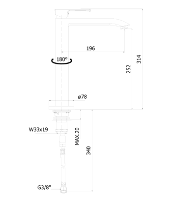 Linee equilibrate nel più totale rispetto della funzionalità, profili smussati per un rubinetto con una eleganza senza tempo che
