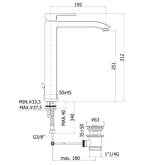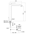Rubinetto alto monocomando per lavandini d'appoggio con scarico up & down; flex inox cm 37 att. 1/2” F.
