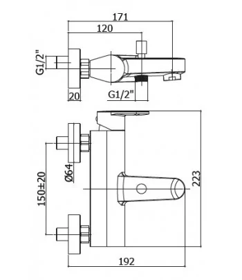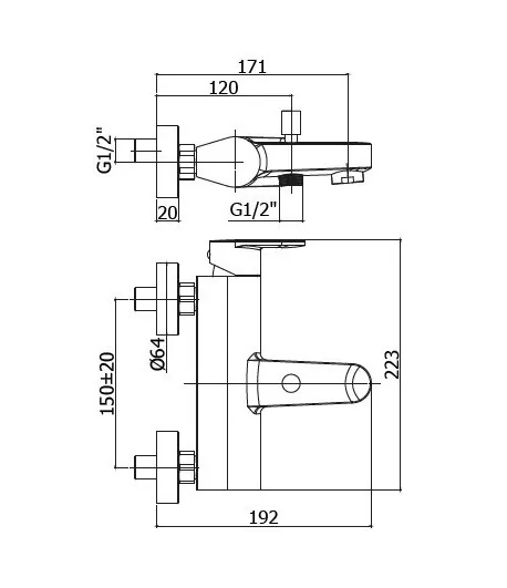 con supporto a muro fisso in ABS con doccia Trieste Bis e flessibile