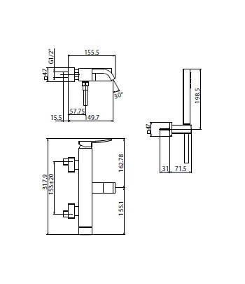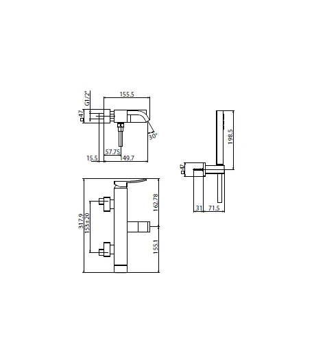 Ely nasce dall’obiettivo di avere una linea squadrata e morbida al tempo stesso: si distingue infatti per il corpo quadro, terminante con la caratteristica bocca curva, sormontato da una leva slanciata verso l’alto.