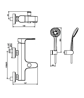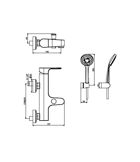 con supporto a muro fisso in ABS con doccia Trieste Bis e flessibile