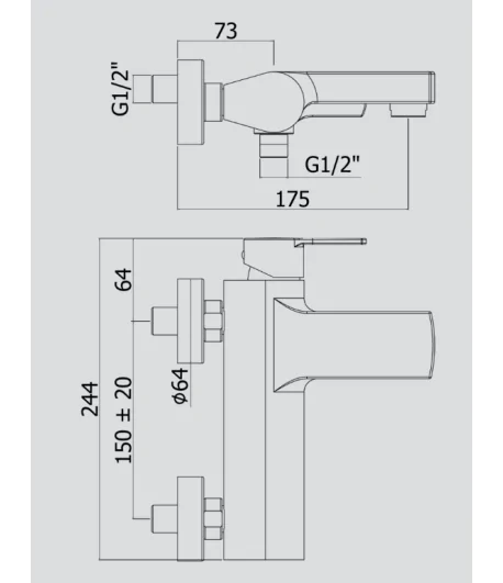 Miscelatore a muro vasca/doccia con deviatore con