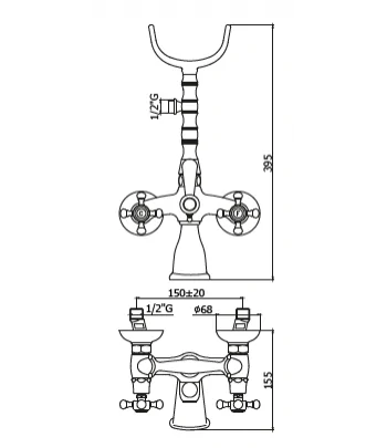 Gruppo vasca/doccia Retrò con deviatore con