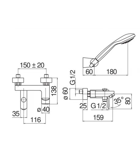 VASCA, MONOCOMANDO ESTERNO CON SET DOCCIA