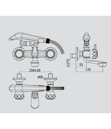Gruppo vasca/doccia Retrò con deviatore con