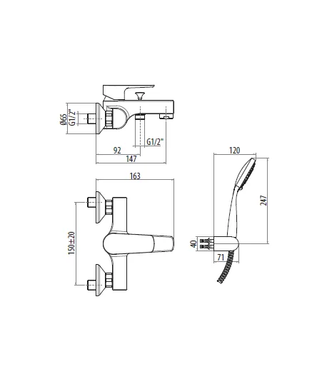 Miscelatore esterno vasca con doccia duplex