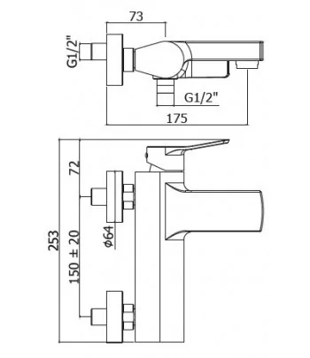 PARTE ESTERNA MONOCOMANDO A 2 VIE PER VASCA A PAVIMENTO