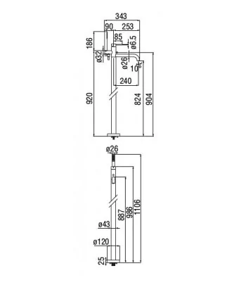 PARTE ESTERNA MONOCOMANDO A 2 VIE PER VASCA A PAVIMENTO