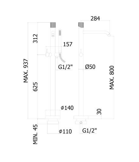 Rubinetto per vasca freestanding con