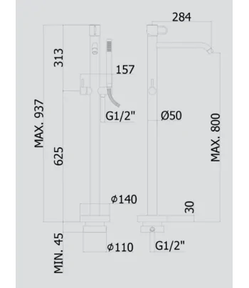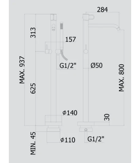 Rubinetto per vasca freestanding con