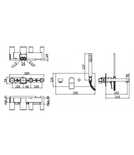 Gruppo vasca/doccia incasso con