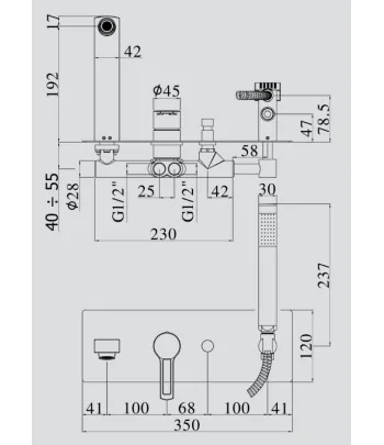 Gruppo vasca/doccia incasso con