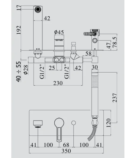 Miscelatore incasso vasca con doccia duplex