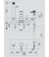 Rubinetto monocomando per vasca incasso, con deviatore, piastra orizzontale, con flessibile, doccetta e gancio di supporto.