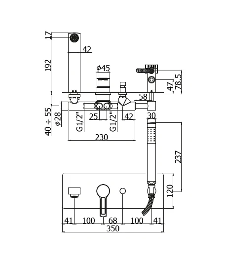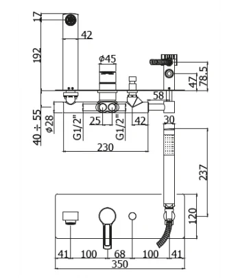 Rubinetto vasca incasso (vasca/doccia 2 uscite) con