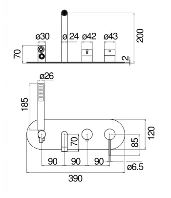 Rubinetto vasca incasso (vasca/doccia 2 uscite) con