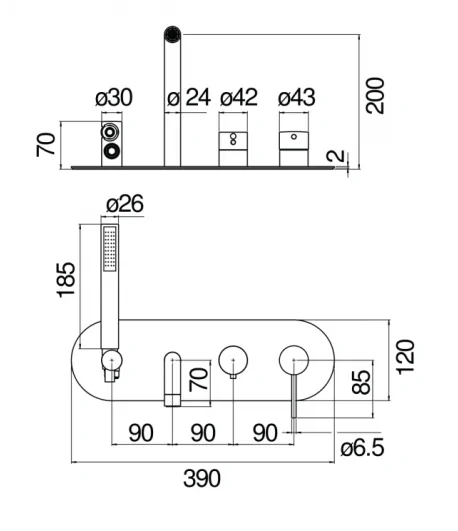 Miscelatore incasso vasca/doccia (2 uscite) con