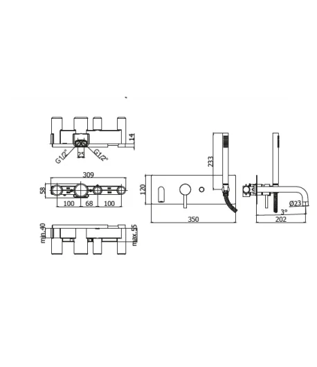Gruppo vasca/doccia incasso con