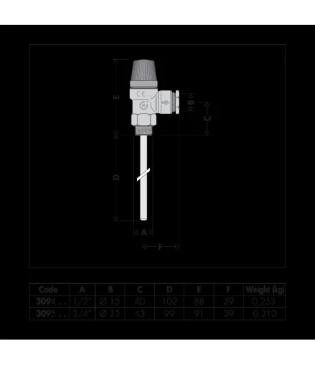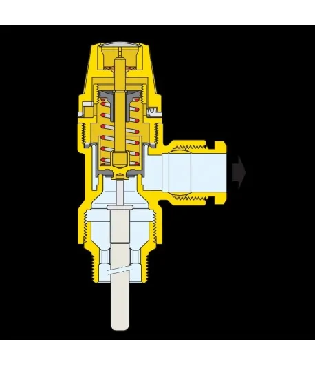 Valvola di sicurezza per impianti solari. Uscita di scarico maggiorata. Omologata TÜV secondoTRD 721 - SV 100 § 7.7.