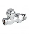 Valvola per termoarredo micrometrica termostatizzabile da 1/2", diritta, in ottone, cromata lucida, con attacco per adattatore tubo rame, plastica o multistrato.